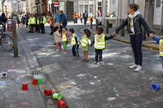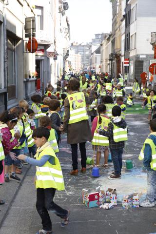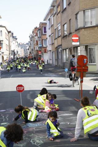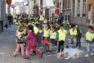 "We hoopten op een 4 à 500 kinderen van de vier scholen in of nabij de zeer onveilige Kroonstraat, maar er zijn er meer dan 750 gespot" aldus Mieke Elaut, mede-organisator en directie van de basisschool De Reuzenpoort.